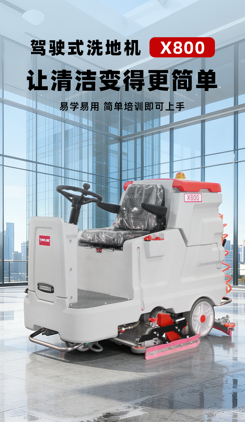 洗扫一体机X800产品介绍一、产品概述产品简介:洗扫一体机X800整机设计美观大气,操作简单易上手,一台机器可代替10-15人,适用于物业、医院、工厂、仓库、机场、车库等大面积室内场景地面清洁作业。产品定位:适用于大型工厂、物流仓库、商场超市等大面积硬质地面清洁场景,满足企业对高效、深度清洁的需求。设计理念:秉持人性化设计理念,注重操作便捷性与安全性,